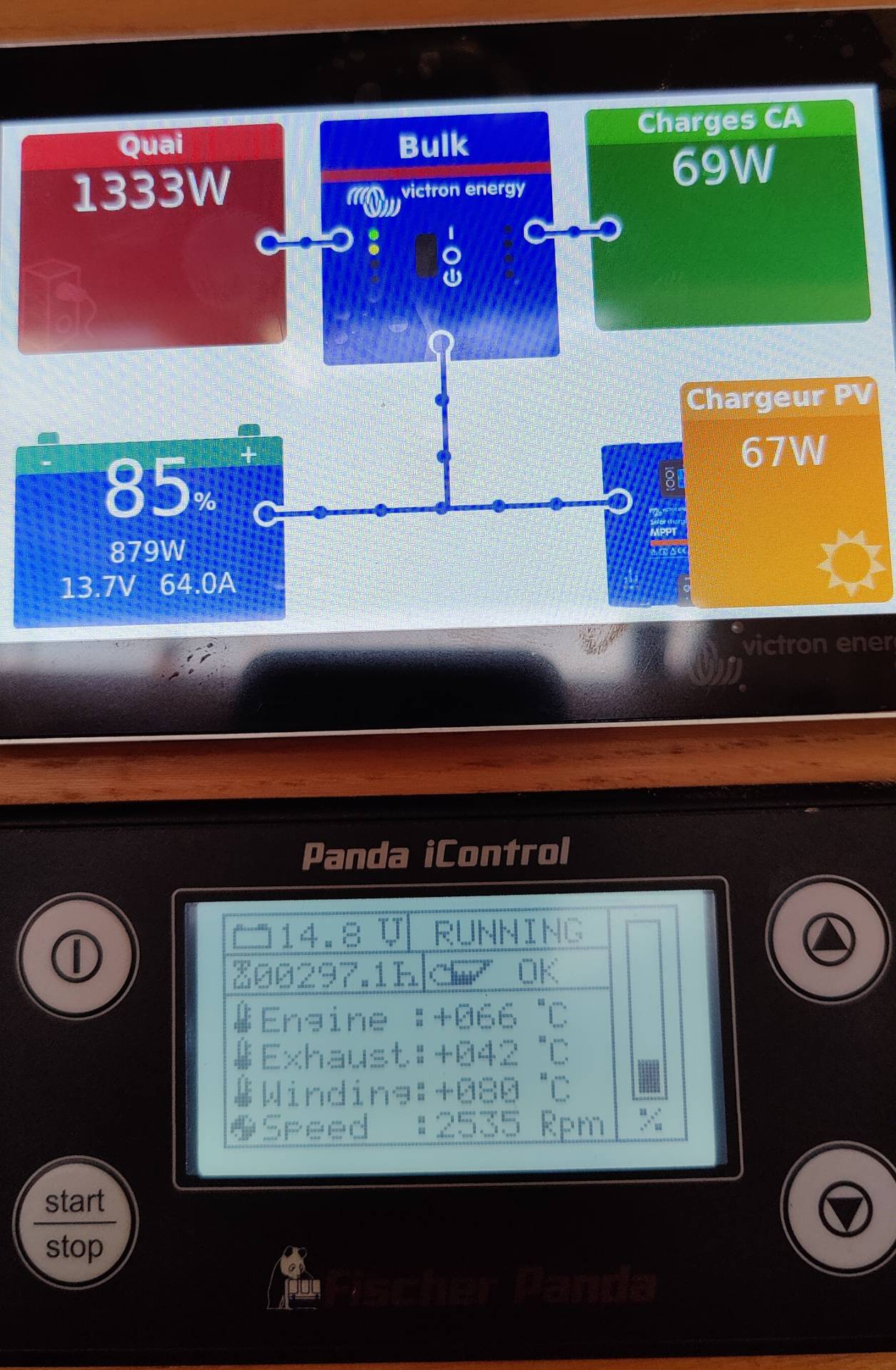 - MOTEUR & SYSTÈMES • Moteur VOLVO D2-75F – 4300 h – protocoles Volvo mis à jour • Révision de la pompe de climatisation • Révision complète du propulseur d’étrave, avec remplacement du boîtier de commande • Groupe électrogène Panda 6 kW • Dessalinisateur Schenker ZEN 50 L/h – 12 V – installé en 2022