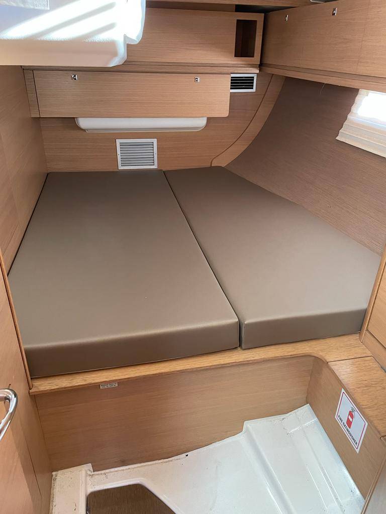 - CONFIGURATION & CONFORT À BORD • 5 cabines doubles avec literie de 2022, 3 cabinets de toilette, 2 WC • Carré lumineux avec cuisine en L et nombreux rangements • Cockpit XXL avec double barre à roue, table pliante • Plage arrière transformable pour baignade • Volume intérieur exceptionnel